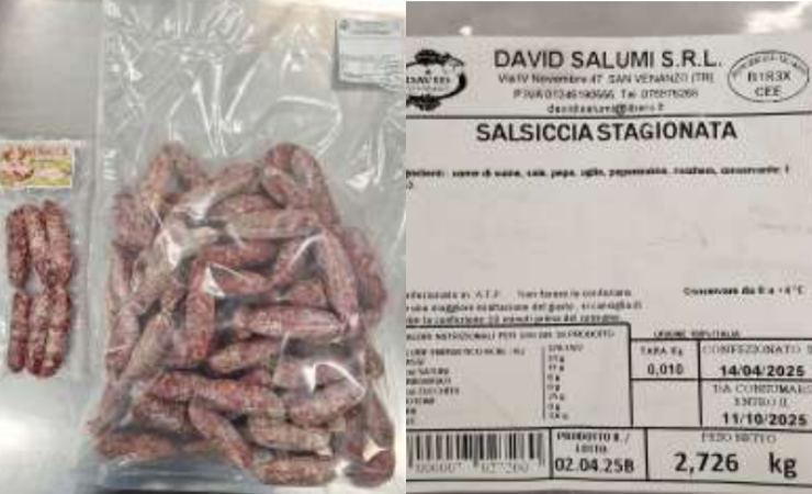 Un prodotto in vendita tra i reparti dei salumi è stato ritirato immediatamente come disposto dal Ministero della Salute. Si tratta di un lotto di salsiccia stagionata prodotto da David Salumi S.R.L., azienda di San Venzano in provincia di Terni.